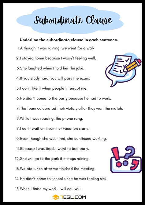 In years 3 to 6, children are expected to continue to use a range of simple, compound and complex sentences. This clauses worksheet directs the student to underline the main clause once and the subordinate clause twice. Web subordination worksheets to print: