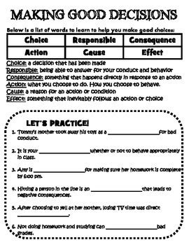 Making Good Decisions Worksheets. This sheet come with a video that teaches appropriate calming strategies. Worksheets are good choices activities, decision making work, how to make good decisions workbook,.