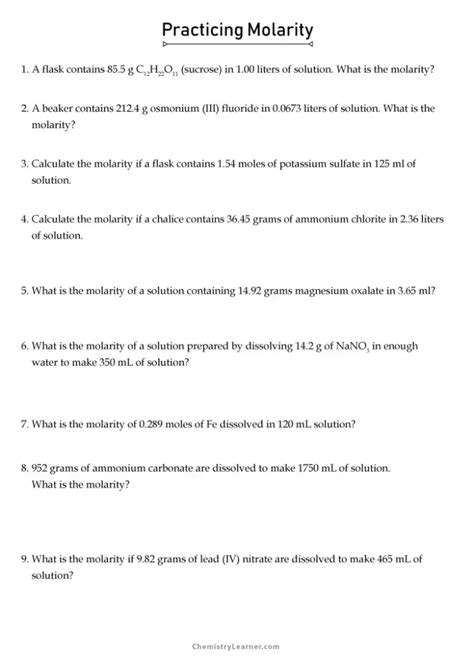 Molarity Practice Worksheet Answer from www.onlineworksheet.my.id