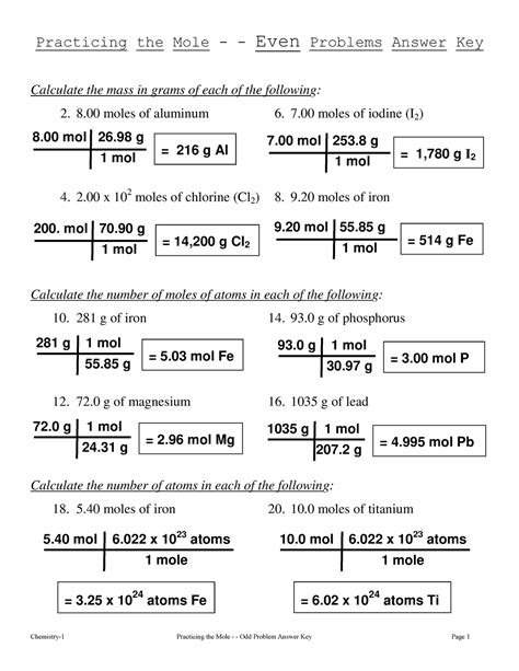 Mole Concept Worksheet 1 Covers The Basics Of Molar Mass, Conversion From Mass To Moles And Vice Versa.