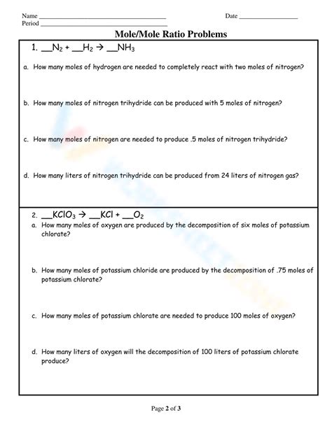 Mole Ratio Worksheet Answer Key kidsworksheetfun from kidsworksheetfun.com