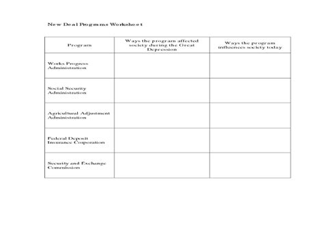 Students will examine all different aspects of the new deal and use information that they have learned to facilitate an amazing primary source. Fill out the information in the graphic organizer below for the characteristics of the new deal programs discussed in this lesson. Web in this new deal worksheet, students write how different new deal programs affected society during the great depression and how it still affects society today.