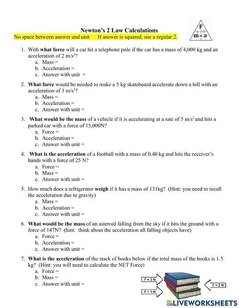 Newtons Second Law Worksheets. Free interactive exercises to practice. Web what is newton’s second law worksheets?