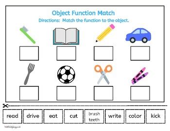 Functions of objects other contents: Web work on stating the function of common objects and identifying an object when given a functional description with these print & go worksheets, flashcards, and games. For the first set of.
